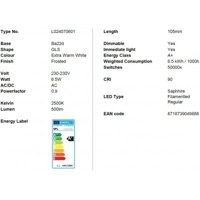 Ba22d LED vlákno GLS A60x105mm 500Lm 6,5W 925 TR-stmívatelná matná