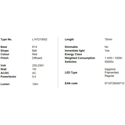 E14 LED koule vlákno G45x75mm 1W není stmívatelná červená