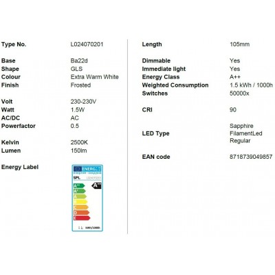 Ba22d LED vlákno GLS A60x105mm 150Lm 1,5W 925 TR-stmívatelná matná