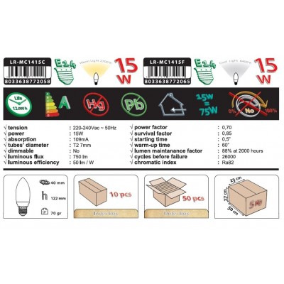 Úsporná žárovka Micro Candle E14 15W 2700K