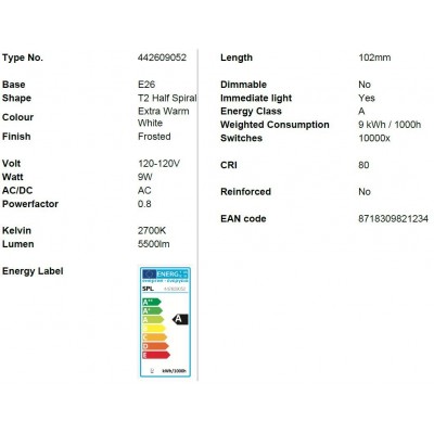 CFL E26 T2 poloviční spirála 120V 9W 46x102 550Lm 2700K 10.000h