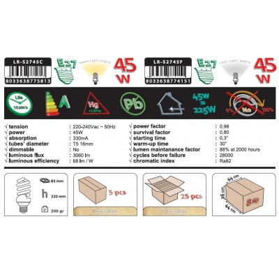 Úsporná žárovka Maxi Full Spiral E27 45W 6400K