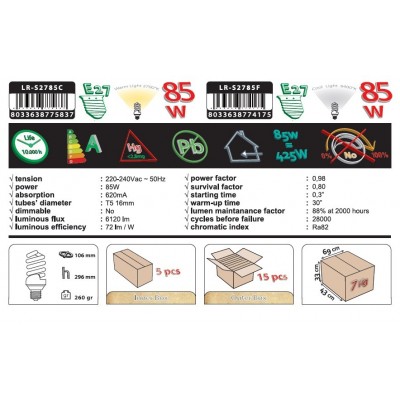 Úsporná žárovka Maxi Full Spiral E27 85W 6400K