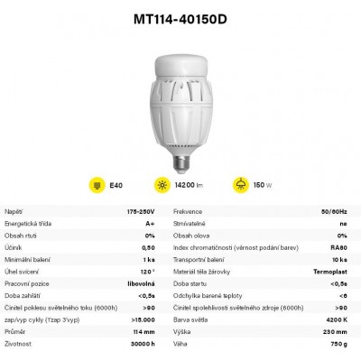 LED žárovka průmyslová E40 150W 4200°K 30.000 h