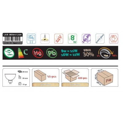 Halogenová úsporná žárovka MR8 G4 12V 8W jako 11W 2000h