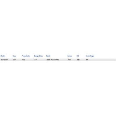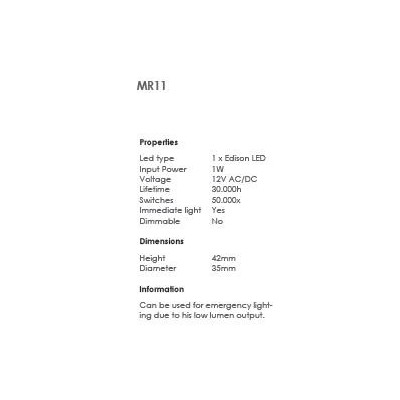 MR11 GU4 LED 35x42mm 12V 83mA 1W AC/DC 3000K 78Lm 30° 30Kh