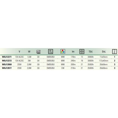 LED G4 sloupek 12V 1,5W 13LED studená bílá 11x43mm