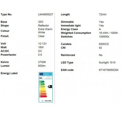 LED AR111 G53 111x72mm 12V 850Lm 18W 2700K 927 24° AC/DC stmívatelná
