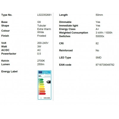 LED G9 16x50mm 250Lm 3W 2700K 827 360° AC 230V stmívatelná matná BL