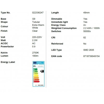 LED G9 16x49mm 180Lm 2,2W 2700K 827 360° AC 230V stmívatelná matná