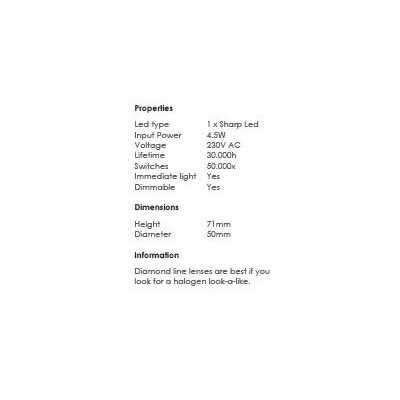GU10 LED PMMA 50x71mm 230v 4.5W AC 4000K 296Lm stmívatelná 38° 30Kh