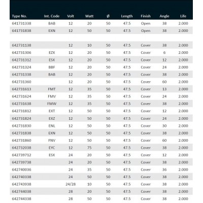 MR16 GU5.3 50x47.5mm 12v 20W čirá 2.000h otevřená
