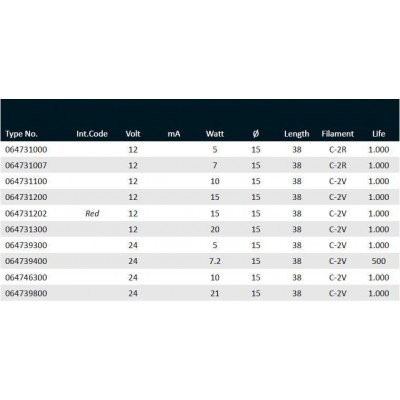 T15 W2.1x9.5d 15x38 24V 7.2W 3.5CP 500h