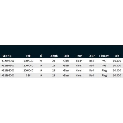 Ba9s patice T9x23 220/240V neon 1 žárovka uvnitř