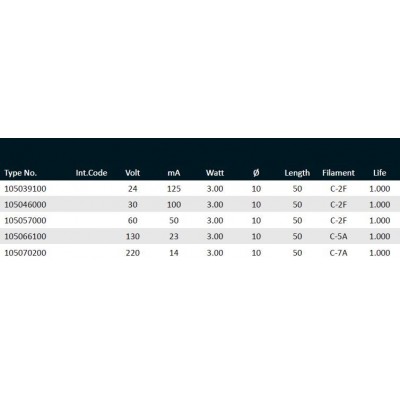 E10 závit T10x50 24V 125mA 3W C-2F 1000 h