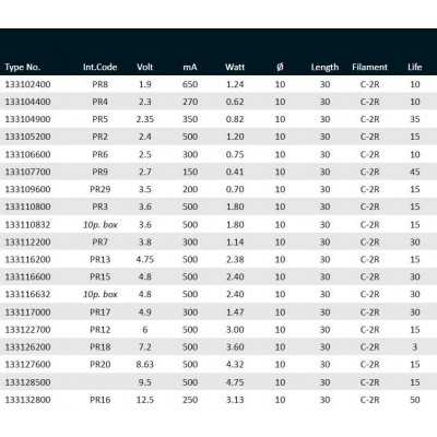 PR5 P13,5s11x30 2,35V 350mA 35 h