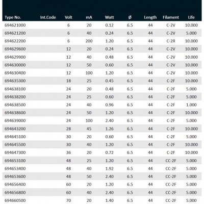 T6.8F 6.5x44 48V 25mA CC-2F 5000 h