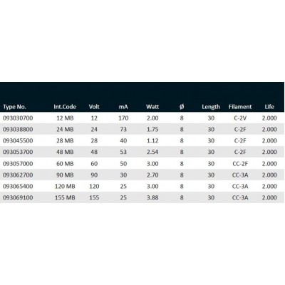 120MB Ba9s patice T8x30 120V 25mA CC-3A 1000h