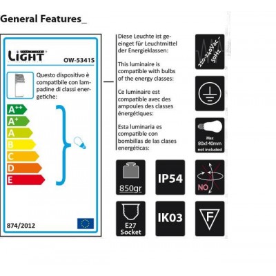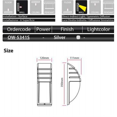 Venkovní svítidlo pro zdroje s paticí E27 (max. 80 x 140 mm) v provedení hliník, stupeň ochrany IP54, barva stříbrná. Zdroje nejsou součástí balení. Délka / Výška / Hloubka svítidla 120 / 350 / 111 mm. Záruka 24 měsíců.