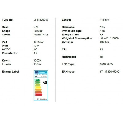 LED R7s Ø25x118mm 900Lm 10W 3000K 830 360° AC 85-265V čirá stmívatelná