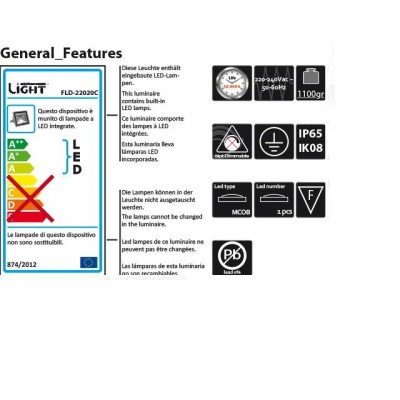 LED reflektor venkovní 22W/996,6 lm 4000K 220-240V AC IP65 50-60Hz 50.000h