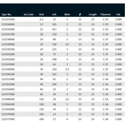 E12 závit T13x33 30V 65mA 2W 2000 h
