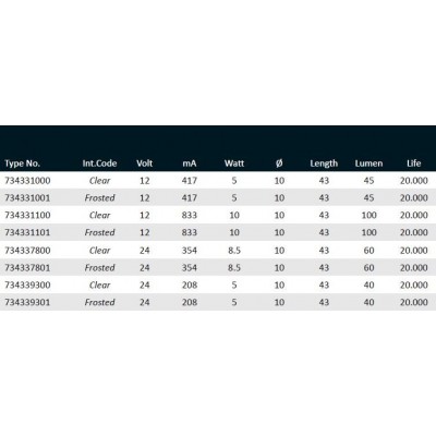 Festoon Rigid W.T.10x43 Xenon 24V 8.5W F