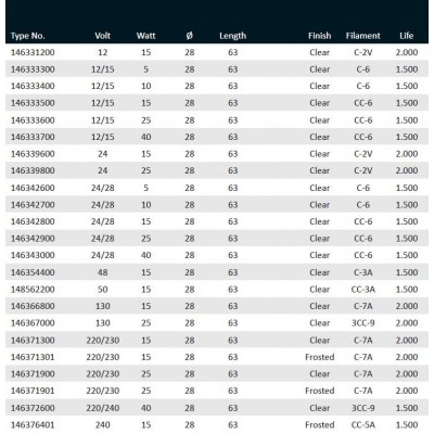 E14 závit P28x63 110/130V 25W C9-CC3A 2000 h
