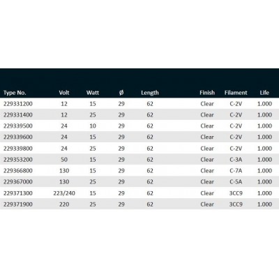 Ba22d patice P28x63 220V 25W CC-3A C-9 1000 h