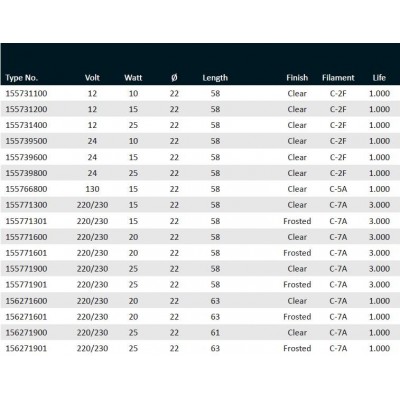 Ba15d patice T22x63 220/230V 20W C-7A 1000 h