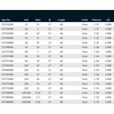 E27 závit T27x60 220/260V 5/7W C-7A