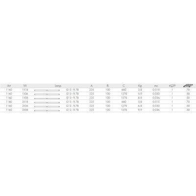 Zářivkové stropní svítidlo – vestavné 1x36W, G13 – FL T8. Materiál pozinkovaná nerez ocel. Předem natřeno polyesterovou pryskyřicí. Lakované bílým epoxypolyesterovým práškem proti žloutnutí, s fosfátem a odmašťovacím předčištěním. Délka svítidla/šířka/hloubka 1270/255/100 mm. Určeno pro vnitřní použití IP20. IK07. Záruka 24 měsíců.