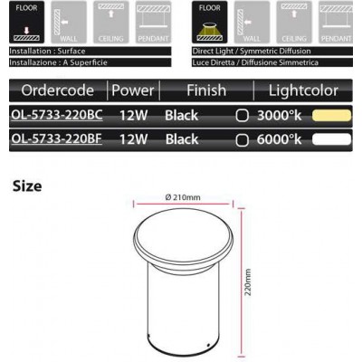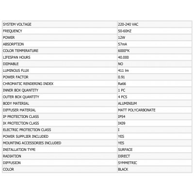 LED sloupek svítidlo venkovní 12W 6000°K 220-240V 50-60Hz IP54 černé 40.000h