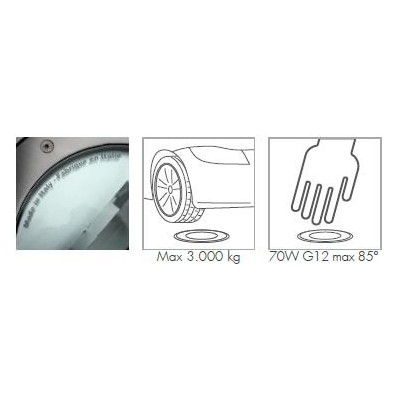 Nášlapné svítidlo čtvercové s paticí R7s 1x70W, stupeň ochrany IP67. IK08. Max. zatížení 3.000 kg. Délka svítidla/šířka/hloubka 245/245/305 mm. Tlakově litý hliník, polykarbonátové vnější tělo, tvrzené čiré sklo 15 mm tloušťka, silikonové těsnění. Záruka 24měsíců.