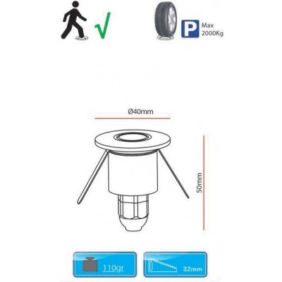 Venkovní nášlapné LED svítidlo, 1W, IP65, Ra80, max. 2.000 kg, úhel svítivosti 60°, 3000°K